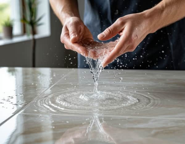 Проведите тест прямо в магазине: капните воду на тыльную сторону плитки. Если капля впитывается за минуту — лучше поискать другой вариант. На хорошем керамограните капля будет сидеть, почти не впитываясь.